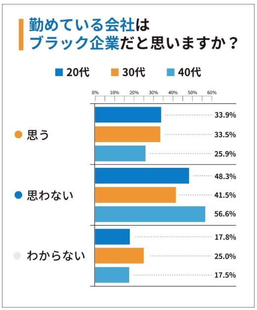 - 勤務先をブラック企業だと思う人の割合は約3割